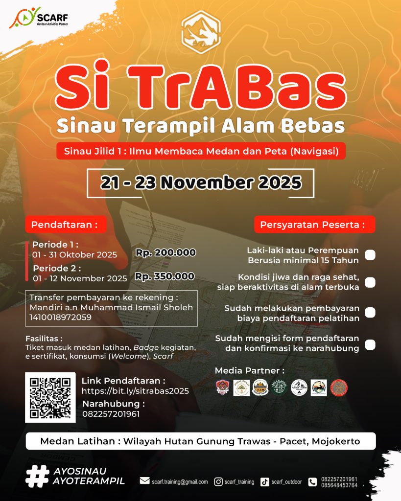 Si Trabas 2025 akan dilaksanakan mulai hari Jum’at sampai dengan Minggu, 21 – 23 November 2025 di Wilayah Gunung dan Hutan Trawas Kabupaten Mojokerto. Pendafaran Si Trabas sudah dibuka mulai 1 – 31 Oktober 2025 untuk pendaftaran gelombang pertama, dengan biaya 200 ribu rupiah. Pendaftaran gelombang 2 dibuka mulai 1-12 November 2025 dengan biaya pendaftaran 350 ribu rupiah.